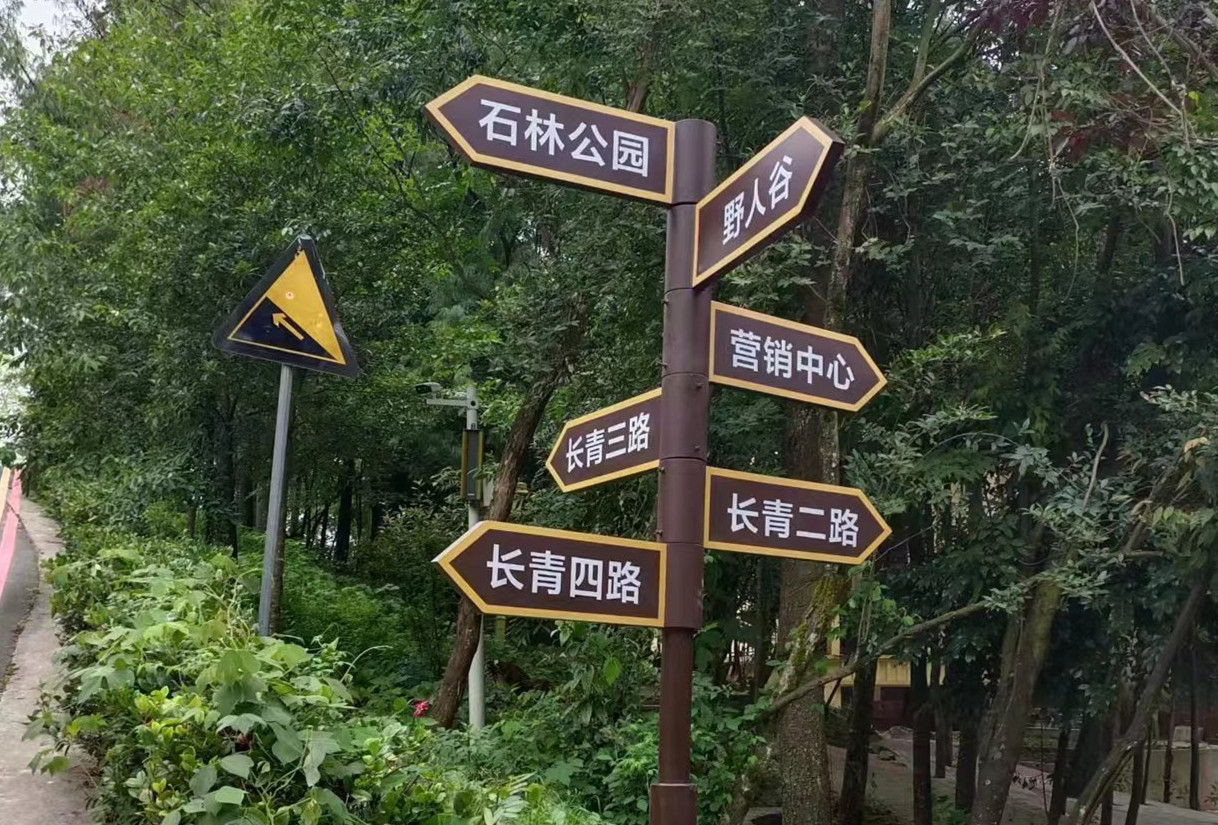 4、重慶標(biāo)識標(biāo)牌的樣式為地柱形:標(biāo)記在地面的某些固定構(gòu)造上的橫形、豎形、立體形的標(biāo)識標(biāo)牌