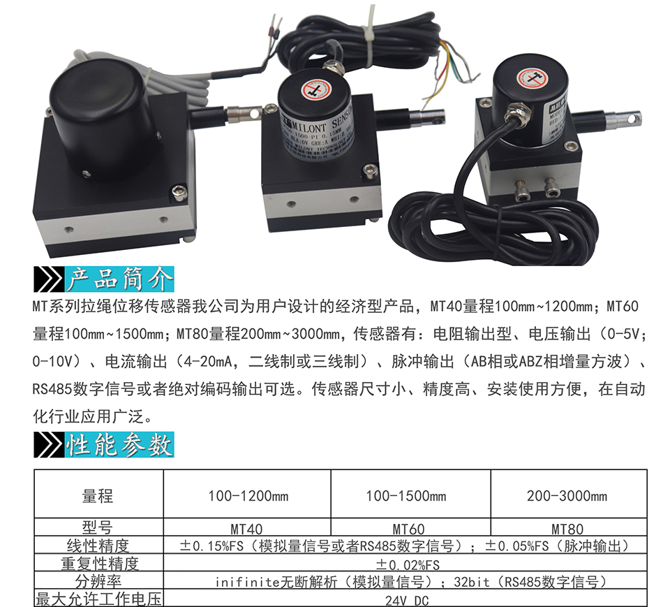 米蘭特MT拉繩位移傳感器安裝比較簡(jiǎn)便,主要用于各類(lèi)自動(dòng)化機械設備位移測量與位置定位。